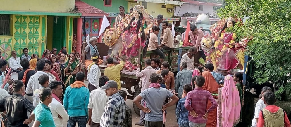 राजिम।शक्ति जागरण का महान पर्व नवरात्रि का त्यौहार पुरे राजिम अञ्चल के ग्राम दूतकैन्या, बकली रावण, परसदा जोशी, पोखरा, अरंड, में भव्य रूप से मनाया गया। नौ दिन नौ रात तक माता की उपवास, पूजा आरती एवम जस सेवा का अद्भुत माहौल बना रहा गाँव गाँव गली गली में माँ दुर्गा की भव्य कलश स्थापित किया गया था वहीं देवी मंदिरों में मनोकामना ज्योति कलश स्थापित किया गया।अष्टमी हवन पूजन के साथ ही नवकन्या भोज कराकर मातृ शक्ति को नमन किया गया, इसके बाद नवमी एवम दशमी को बड़े ही श्रद्दा भाव के साथ माता की अद्भुत झांकी प्रस्तुत करके माता को अश्रुपूरित नेत्रों से भावभीनी विदाई दी गई|