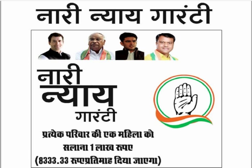 कांग्रेस की महालक्ष्मी नारी न्याय गारंटी के तहत हर घर की महिला को मिलेगा 8333 रूपये प्रतिमाह