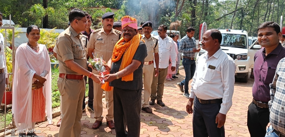 जशपुर।इकाई में पदस्थ पुलिस अनुविभागीय अधिकारी जशपुर श्री राजेन्द्र सिंह परिहार द्वारा 62 वर्ष की अधिवार्षिकी पूर्ण करने पर उप पुलिस महानिरीक्षक एवं वरिष्ठ पुलिस अधीक्षक जशपुर श्री डी.रविशंकर (भा.पु.से.), अतिरिक्त पुलिस अधीक्षक जशपुर श्री उमेश कुमार कश्यप एवं अन्य अधिकारियों/कर्मचारियों द्वारा पुलिस अधीक्षक कार्यालय जशपुर में विदाई समारोह का आयोजन कर सेवानिवृत्त हो रहे अधिकारी को शाल, श्रीफल एवं स्मृति चिन्ह प्रदाय कर उनके उज्जवल भविष्य एवं अच्छे स्वास्थ्य की सुभकामनाये देते हुए भावभीनी विदाई दी गई, इस दौरान सेवानिवृत्त हो रहे अधिकारियों के परिजन, पत्रकारगण, थाना प्रभारीगण एवं कार्यालय के समस्त स्टाॅफ भी उपस्थित थे।