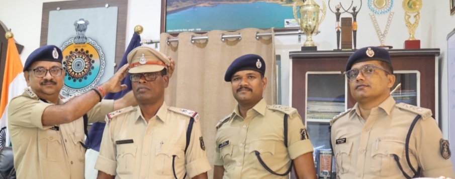 पुलिस अधीक्षक डी. रविशंकर ने आभाष मिंज को स्टार लगाकर उप निरीक्षक के पद पर किया पदोन्नत