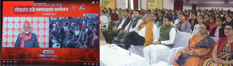कार्यकम में वर्चुअल माध्यम के जरिए ‘नमो नवमतदाता सम्मेलन’ में प्रधानमंत्री नरेंद्र मोदी और राष्ट्रीय अध्यक्ष जेपी नड्डा ने देश भर के युवाओं को मतदान के लिए प्रेरित किया