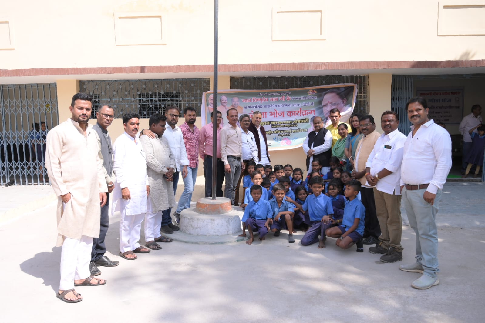 रायपुर (News27)23.02.2024 । मुख्यमंत्री विष्णुदेव साय के जन्मदिन पर बुधवार को शहीद भगत सिंह प्राथमिक शाला, पंडरी में नेवता भोज का आयोजन किया गया। इस नेवता भोज कार्यक्रम का आयोजन सुराज जन कल्याण सोसायटी एवं ब्लू बर्ड्स ऑन द स्काई के तत्वाधान में किया गया, जहां मुख्य अतिथि के तौर पर रायपुर उत्तर विधायक पुरन्दर मिश्रा को आमंत्रित किया गया था। नेवता भोज कार्यक्रम में स्कूली बच्चों को विधायक पुरन्दर मिश्रा सहित आयोजन समिति के सदस्यों ने परोसकर भोजन कराया।