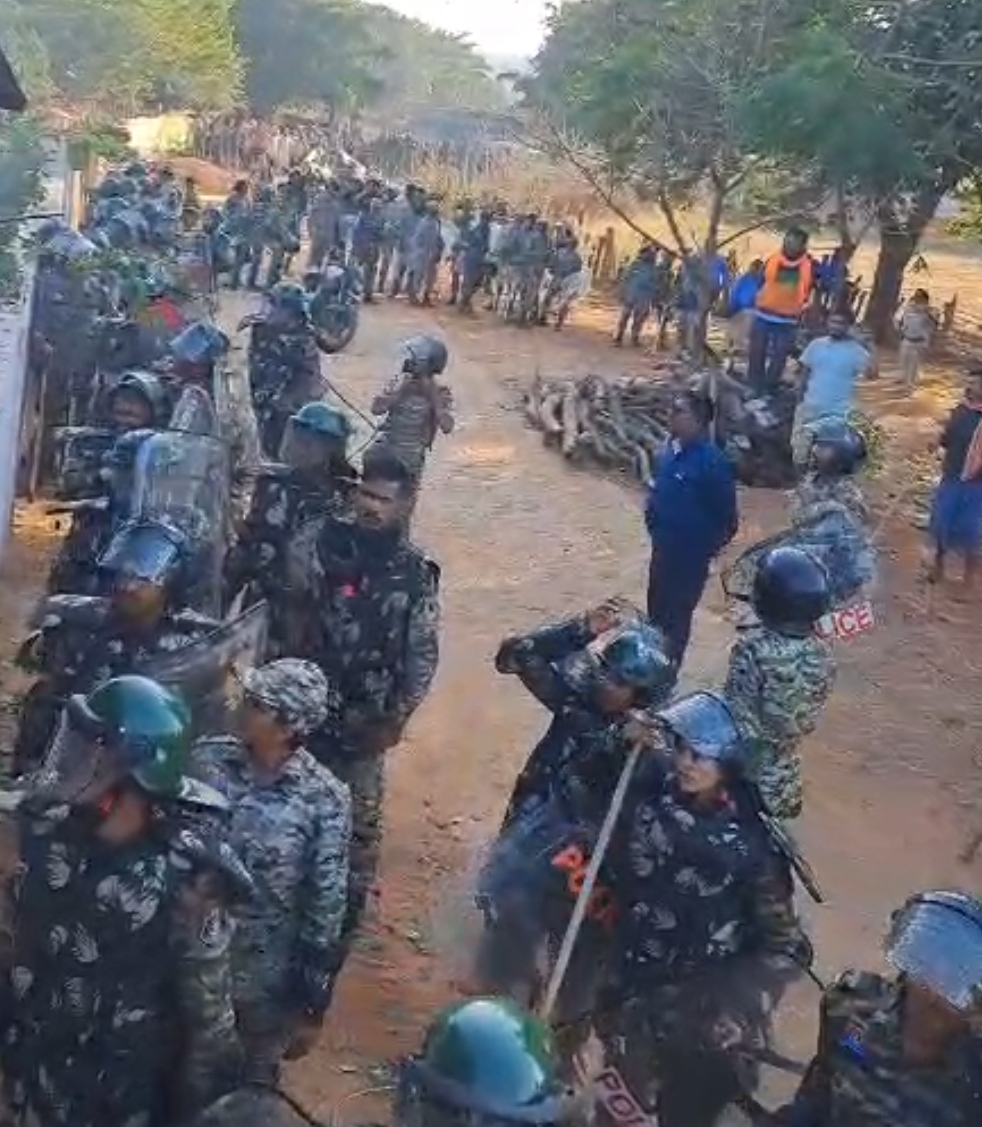 भारी पुलिस बल तैनात, गांव छावनी में तब्दील