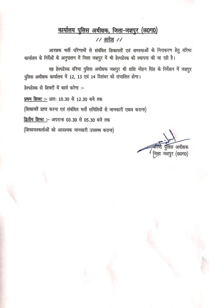 जशपुर में आरक्षक चयनित अभ्यर्थियों का चरित्र सत्यापन 13 दिसंबर को