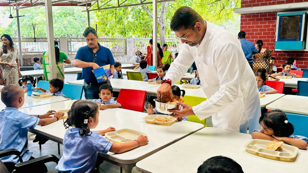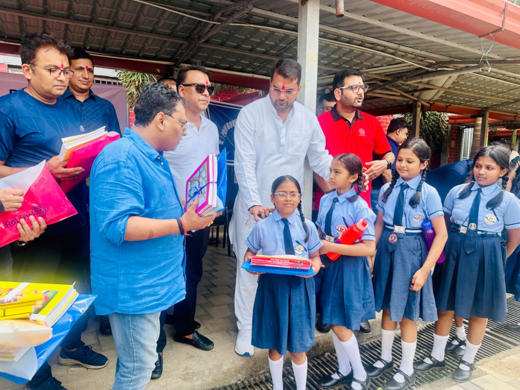 बी.पी.पुजारी स्कूल प्रवेशोत्सव के अवसर पर छात्रों में किताब, स्टेशनरी वितरण कर किया न्यौता भोज व वृक्षारोपण का आयोजन