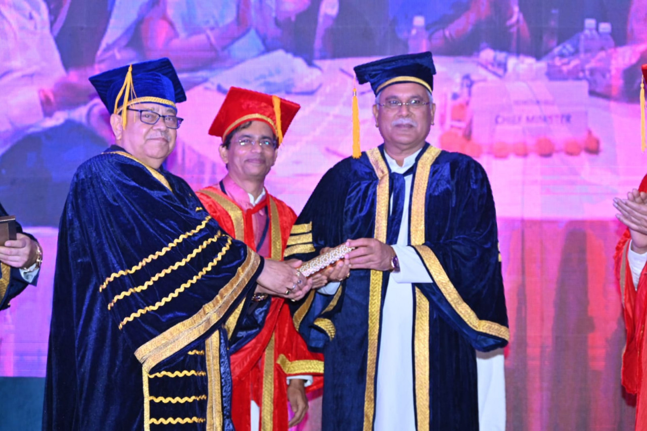 रायपुर, 29 अप्रैल 2023।मुख्यमंत्री भूपेश बघेल को विश्वप्रसिद्ध सोरबोन यूनिवर्सिटी द्वारा छत्तीसगढ़ की ग्रामीण अर्थव्यवस्था को सीमित एवं स्थानीय संसाधनों की उपयोगिता के साथ आगे बढ़ाने की विशिष्ट पहल के लिए डॉक्टरेट की उपाधि से नवाजा गया। मुख्यमंत्री बघेल आज श्री अरोबिंदो फाउंडेशन द्वारा राजधानी रायपुर स्थित होटल सायाजी में आयोजित सोरबोन यूनिवर्सिटी ऑफ पेरिस, फ्रांस के कार्यक्रम ’ग्लोबल अवार्ड्स 2023’ में शामिल हुए। इस अवसर पर इसरो के पूर्व वैज्ञानिक सुरेश कुमार, सोरबोन यूनिवर्सिटी के प्रोफेसर डॉ. विवेक, श्री अरोबिंदो योग एवं नॉलेज फाउंडेशन के डायरेक्टर डॉ. समरेन्द्र घोष, डॉ. बी.के. स्थापक, डॉ. संदीप मारवाह, डॉ. विनय अग्रवाल भी उपस्थित रहे। मुख्यमंत्री भूपेश बघेल की धर्मपत्नी श्रीमती मुक्तेश्वरी बघेल एवं उनके परिवार के लोग भी इस कार्यक्रम में शामिल हुए।