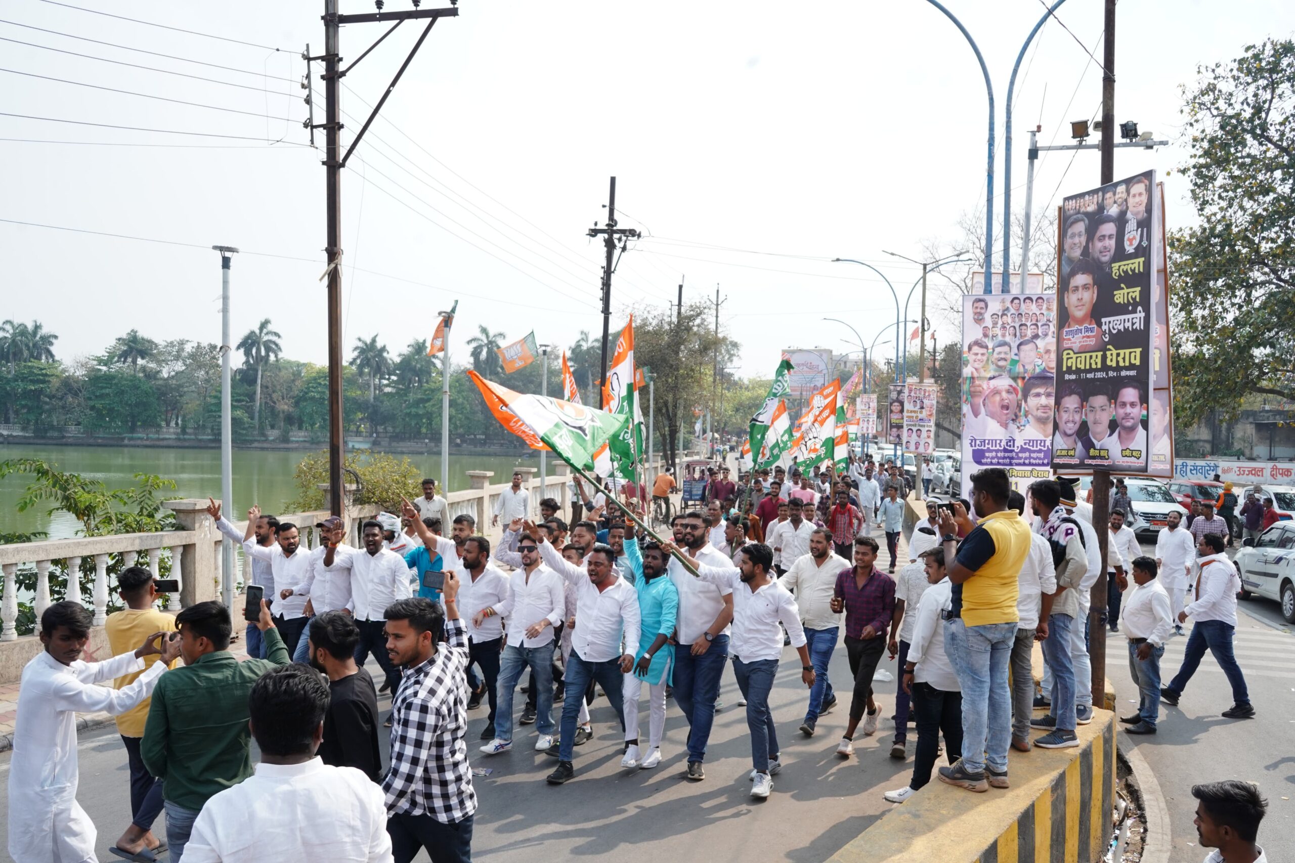 रायपुर (News27) 12.03.2024 । छत्तीसगढ़ युवा कांग्रेस द्वारा आज राजधानी रायपुर में रोजगार दो न्याय दो के मुद्दे पर मुख्यमंत्री निवास का घेराव किया, इस घेराव में हजारों युवा कांग्रेस के कार्यकर्ताओं द्वारा मुख्यमंत्री निवास का घेराव किया गया । पिछले दो महीना से युवा कांग्रेस रोजगार दो न्याय दो का अभियान चला रही थी, इसके तहत कई चरणों में अलग-अलग कार्यक्रम किए गए पहले चरण में महाविद्यालय विश्वविद्यालय एवं कोचिंग सेंटर में युवाओं से मिलकर उन्हें मोदी सरकार की गारंटी वाले जुमले को आठ सवालों के माध्यम से पूछा गया, उसके बाद इस कार्यक्रम को पंचायत चलो एवं वार्ड चलो के तहत आम जनता तक मोदी की गारंटी के नाम पर जो जुमला केंद्र एवं राज्य की सरकार आम जनता को देती है, उन सभी जनहित के मुद्दों को जनता तक पहुंचाया गया आज युवा कांग्रेस के कार्यकर्ताओं द्वारा रायपुर के इनडोर स्टेडियम के सामने में सभा का आयोजन किया गया, जिसमें हजारों की संख्या में युवा कांग्रेस के कार्यकर्ता एकजुट होकर सभा में शामिल हुए, उसके पश्चात हजारों युवा मुख्यमंत्री निवास की ओर पदयात्रा निकालकर जाने का प्रयास किया, इसमें कार्यकर्ताओं द्वारा नरेंद्र मोदी मुर्दाबाद एवं विष्णु देव साय मुर्दाबाद के नारे लगाते हुए मुख्यमंत्री निवास की ओर हजारों युवा कांग्रेस के कार्यकर्ता एवं पदाधिकारी निकले । इन सभी हजारों कार्यकर्ताओं को सप्रे स्कूल के पास बेरी गेट लगाकर पुलिस बल द्वारा रोका गया । पहले वेरी ग्रेट को युवा कांग्रेस के कार्यकर्ताओं द्वारा तोड़कर आगे पहुंचे तो पुलिस द्वारा बलपूर्वक कार्यकर्ताओं को घसीट कर गिरफ्तारी की गई युवा कांग्रेस के कार्यकर्ता लगातार 2 घंटे तक पुलिस के साथ जूझते रहे । इस दौरान युवा कांग्रेस के कार्यकर्ताओं द्वारा टायर भी जलाया गया इसके बाद पुलिस ने कार्यकर्ताओं को घसीट घसीट करके गिरफ्तार किया।