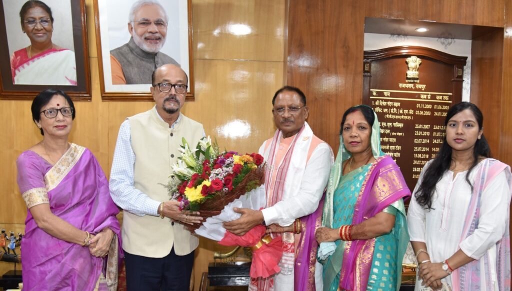 रायपुर (News27) 23.08.2024 । राज्यपाल रमेन डेका से आज यहां राजभवन में मुख्यमंत्री विष्णुदेव साय ने सपरिवार सौजन्य भेंट की। इस अवसर पर राज्य की प्रथम महिला श्रीमती रानी डेका काकोटी, मुख्यमंत्री की धर्मपत्नी श्रीमती कौशल्या साय एवं परिजन उपस्थित थे।