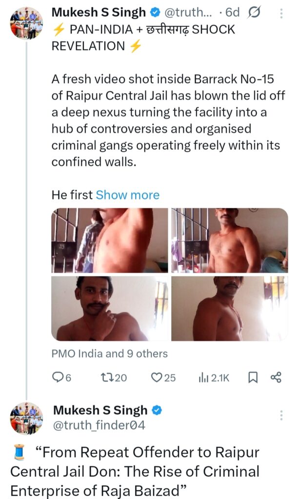 जेल प्रशासन की चुप्पी और नियमों की अवहेलना ने रायपुर सेंट्रल जेल को विवादों का केंद्र बना दिया है। सामाजिक असंतोष, बंदियों के बीच असमान सुविधाएँ और संदेहजनक घटनाएँ यह दर्शाती हैं कि यहाँ सामान्य बंदियों और VIP बंदियों के बीच भेदभाव गहरा रहा है।