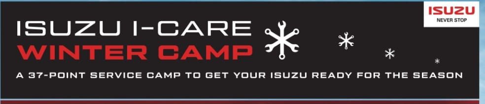 ‘इसुजू केयर’ द्वारा 09 से 14 दिसंबर 2024 (ये दोनों दिन भी शामिल) के बीच सभी अधिकृत इसुज़ू डीलर सर्विस आउटलेट्स पर विंटर कैम्प लगाया जा रहा है। इस अवधि में ग्राहकों को उनके वाहनों के लिए विशेष ऑफर और लाभ दिये जा रहे हैं।