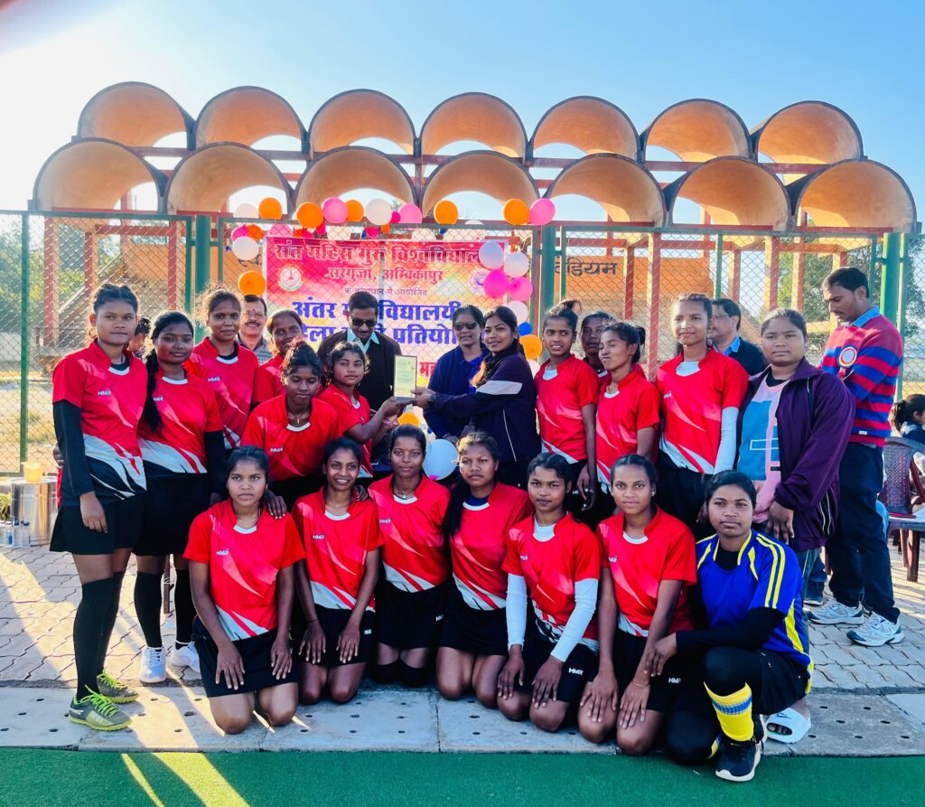 जशपुरनगर।संत गहिरा गुरु विश्विद्यालय अम्बिकापुर के तत्वावधान में सरगुजा संभाग स्तरीय अंतर महाविद्यालय महिला हॉकी प्रतियोगिता का आयोजन शुक्रवार को शासकीय विजय भूषण सिंह देव कन्या महाविद्यालय जशपुर के द्वारा एस्ट्रो टर्फ हॉकी स्टेडियम में किया गया। इस प्रतियोगिता में सरगुजा परिक्षेत्र के 04 टीम ने भाग लिया ,जिसमे शासकीय विजय भूषण सिंह देव कन्या महाविद्यालय विजेता रहा और शासकीय एन ई एस पी जी महाविद्यालय उप विजेता रहा।